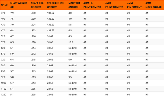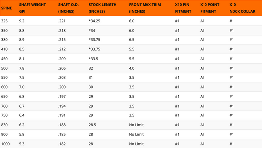 EASTON X10 SHAFT เฉพาะก้านลูกธนู 12 ลูก (SHAFT ONLY 12PK)