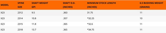 EASTON X23 เฉพาะก้านลูกธนู 12 ลูก (SHAFT ONLY 12PK)