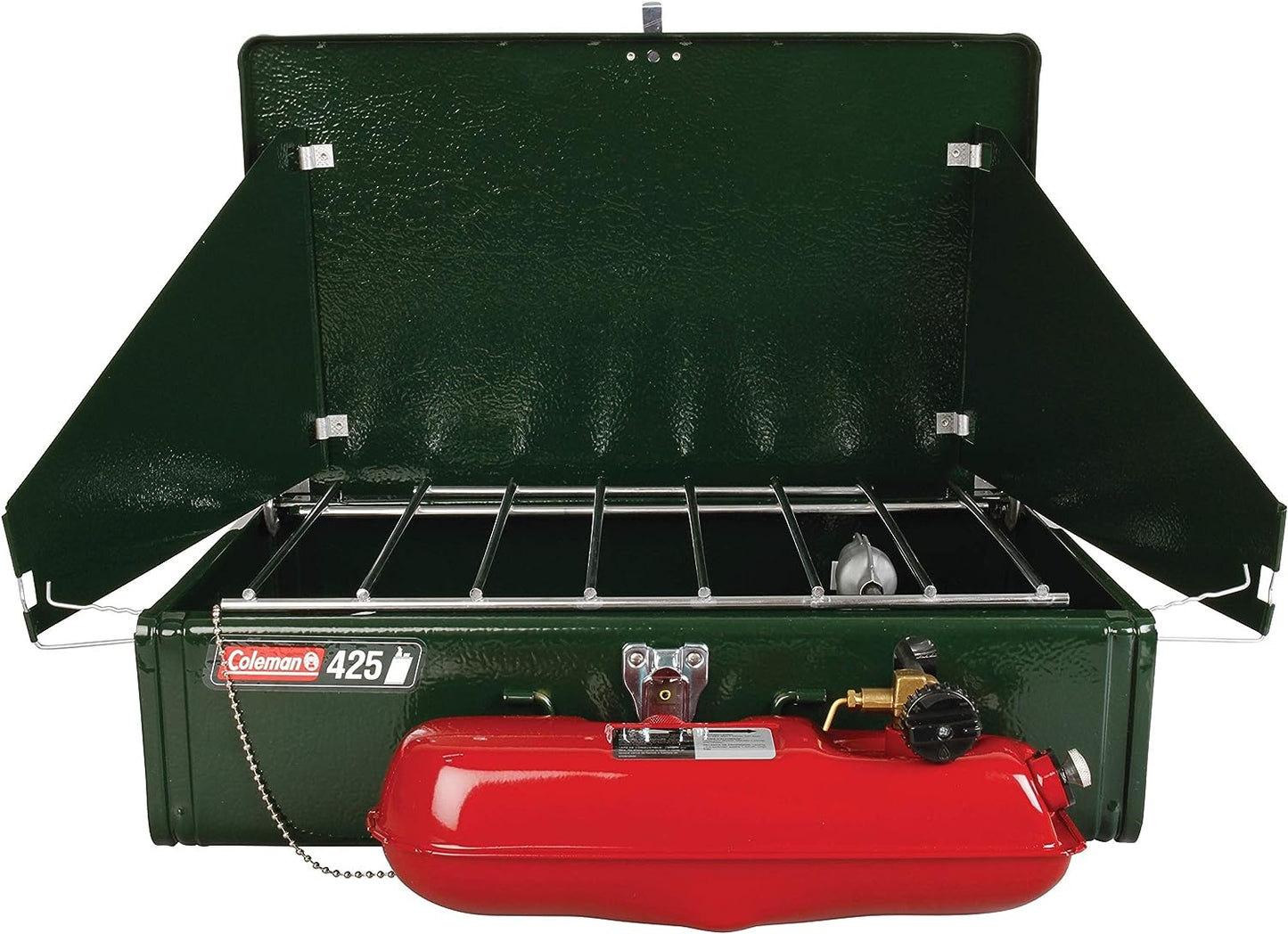 Coleman Classic 2 Burner Stove (425) เตาแคมปปิ้งน้ำมันเบนซิน 2 หัว ที่คงรูปแบบที่เป็นเอกลักษณ์มากว่า 60 ปี ใช้ได้กับน้ำมันเบนซินขาว และเบนซินที่ไม่ใช่แก็สโซฮอล ให้พลังงานรวมกันสูงถึง 14,000 BTU