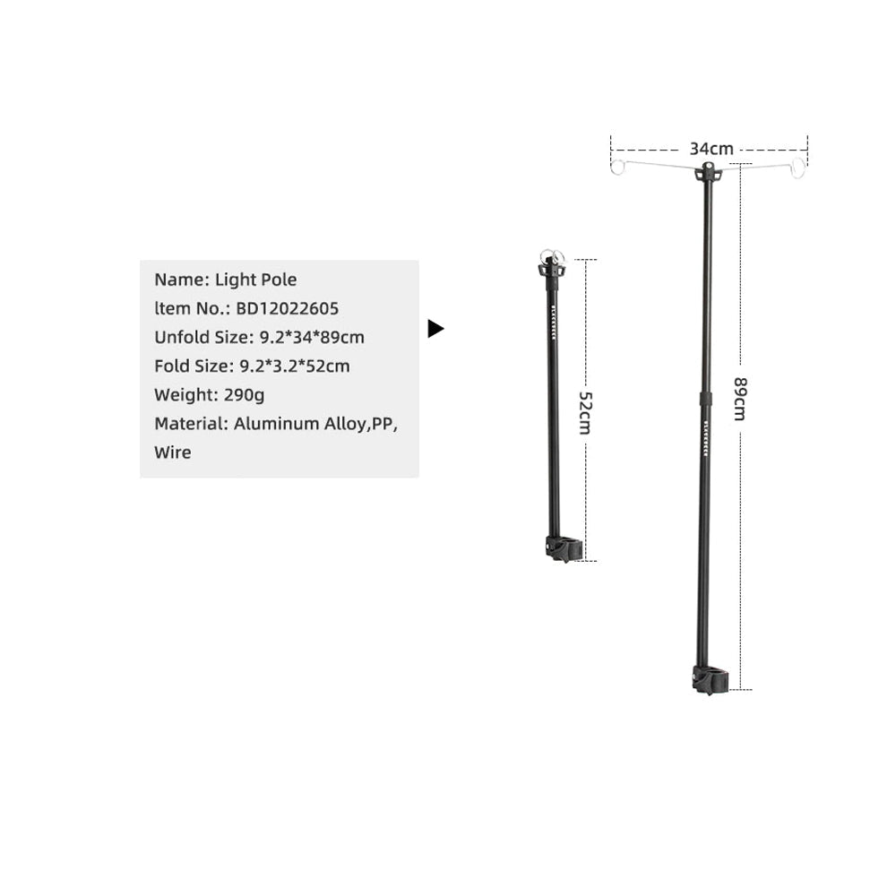 เสาสำหรับห้อยตะเกียง ใช้งานโดยยึดเข้ากับขาโต๊ะ ออกแบบมาให้ใช้กับโต๊ะ Blackdeer Iron Mesh Folding Table หรือโต๊ะรุ่นอื่นที่เป็นขากลม ปรับความยาวได้ตั้งแต่ 52-89 ซม.