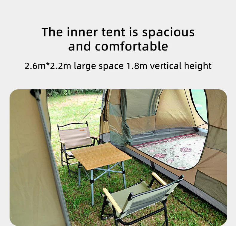 เต็นท์ทรงยาวที่แบ่งห้องนอนและห้องนั่งเล่น ให้พื่นที่ใช้สอยมากมาย สามารถนอนได้ 4 คน ห้องนอนสามารถถอดออกได้ให้เป็นห้องโล่ง หรือหากฝนตกก็สามารถปิดฟลายชีทช่วยกันฝน เป็นเต็นท์ที่คุณสามารถใช้เวลาพักผ่อนได้อย่างเต็มที่