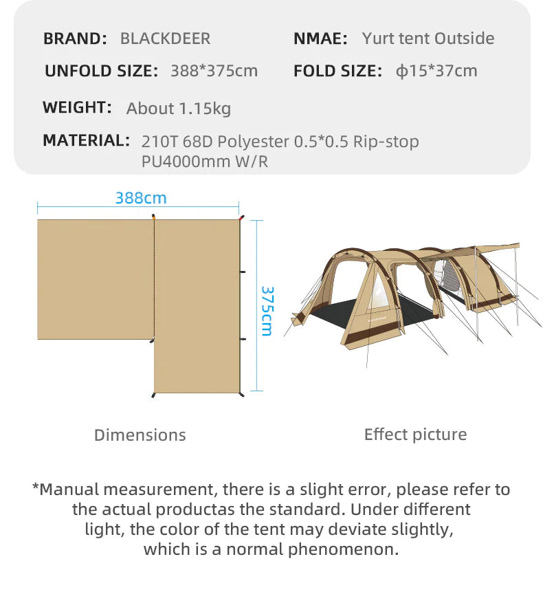 ฟลายชึทเสริมสำหรับเต็นท์ Blackdeer Time Space Tunnel ช่วยเพิ่มพื้นที่และร่มเงาด้านข้างของเต็นท์