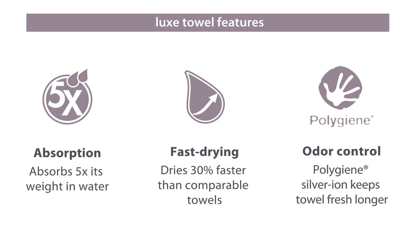 - แห้งเร็ว : แห้งได้เร็วกว่าผ้าเช็ดตัวทั่วไปถึง 30%
