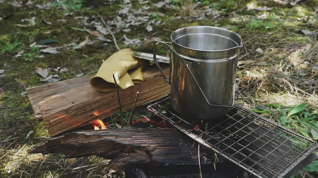 หม้อขนาด 1.2 ลิตร ที่สามารถใช้เป็นกาน้ำร้อน ใช้เป็นหม้อทำอาหาร หรือเป็นซึ้งสำหรับนิ่งและอุ่นอาหารก็ได้ ผลิตด้วยสแตนเลสคุณภาพสูง สามารถใช้กับกองไฟได้ น้ำหนักเบา เหมาะสำหรับการใช้งานในทุกทริปการเดินทาง
