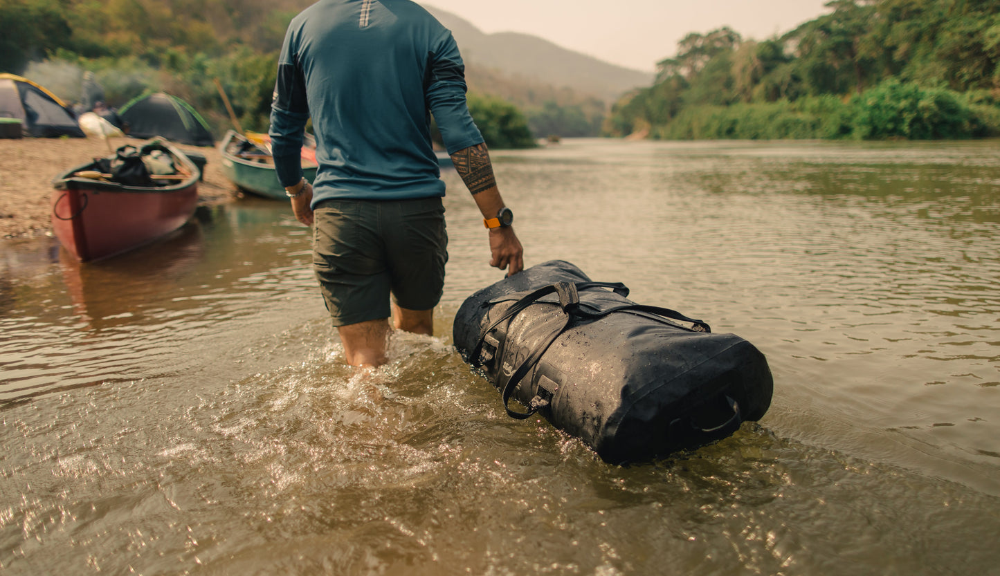กระเป๋า Duffle ระบบกันน้ำที่ดีที่สุด ดำน้ำ 1 เมตรได้นานถึง 30 นาที ตัวกระเป๋าแบน ขนย้ายสะดวก เหมาะมากสำหรับการเดินทางทางน้ำ, วางบนแร็คหลังคารถ หรือใช้กับมอเตอร์ไซค์ทัวริ่ง