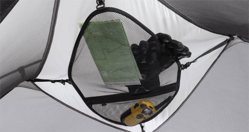 เพื่มพื้นที่ในเต๊นท์ด้วยที่เก็บของด้านบน ไม่ว่าจะเป็นไฟฉาย ขนมหรือของเล็กๆ อื่น ก็สามารถวางเก็บไว้ได้ มีช่องซิปให้ใส่ของ มั่นใจได้ว่าจะไม่หล่นหาย สามารถใช้ได้กับเต็นท์ MSR ทุกรุ่น
