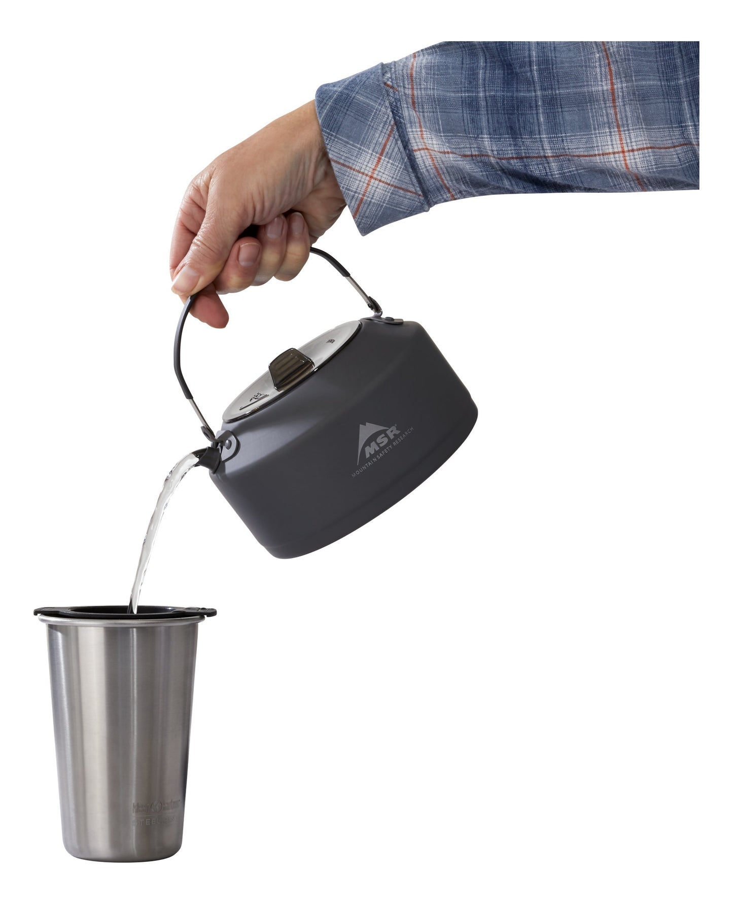 หม้อชาและกาแฟ อลูมิเนียมแบบ Ultralight ที่ออกแบบมาให้มีขนาดเล็กด้วยรูปทรงไม่เหมือนใคร มาพร้อมฝาปิดแบบพิเศษ ที่เปิดได้ง่าย แต่ไม่หล่นเวลารินน้ำ หูจับตั้งตรงอยู่ด้านบน ทำให้จับได้ง่ายและไม่ร้อนมือ ภายในสามารถเก็บเตาขนาดเล็กและชาหรือกาแฟ พร้อมสำหรับชงในช่วงเช้าก่อนการเดินทาง