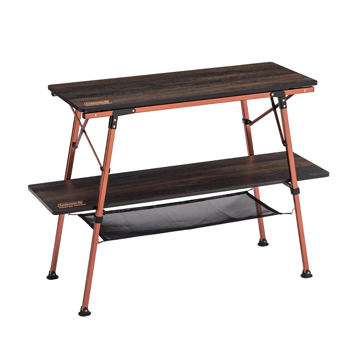 ชั้นวางของในตระกูล Master Series จาก Coleman ออกแบบมาให้มีน้ำหนักเบาและพับเก็บได้ เป็นชั้นวางของ 2 ชั้น พร้อมด้วยผ้าตาข่ายด้านล่าง สำหรับวางจานที่ล้างแล้วหรือของอื่นๆ ช่วยให้แคมป์ของคุณมีที่วางของได้อย่างเป็นระเบียบ